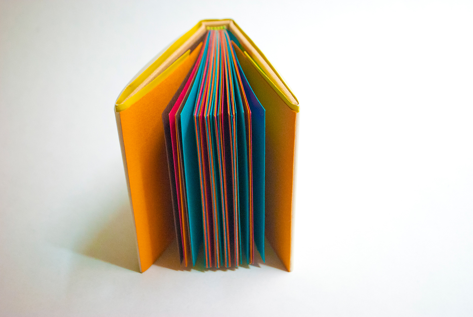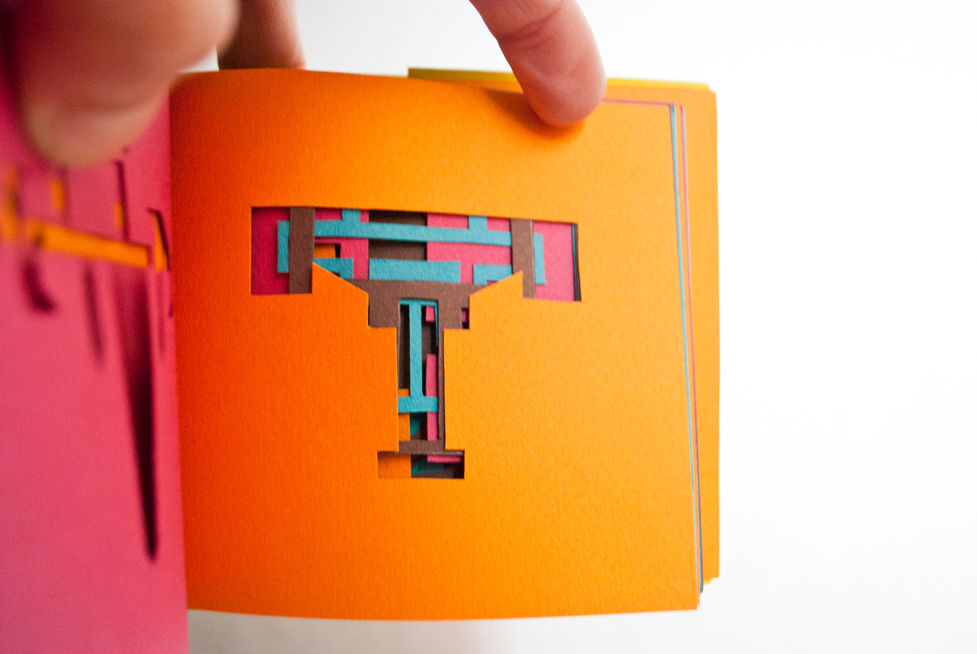 Handmade hardcover book of 40 letter T die cuts by hand. Each letter is a response to the previous form.
